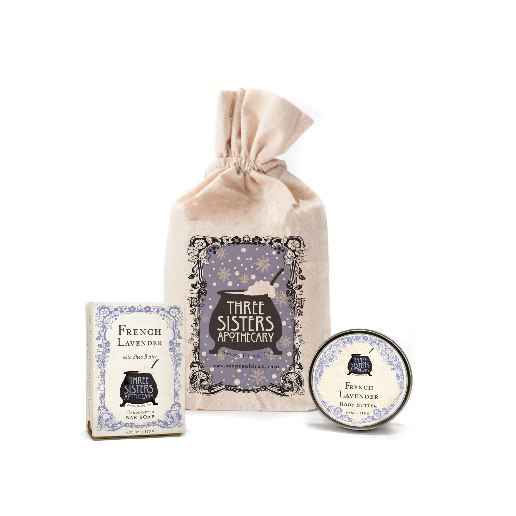 Pamper yourself with our bar soap and body butter gift set. Our set includes one full size handmade artisan Bar Soap and one 4 oz. Body Butter in an ultra-stylish Halloween themed muslin silk screened bag. Made from ultra premium plant oils and butters our gift sets indulge and pamper all over.